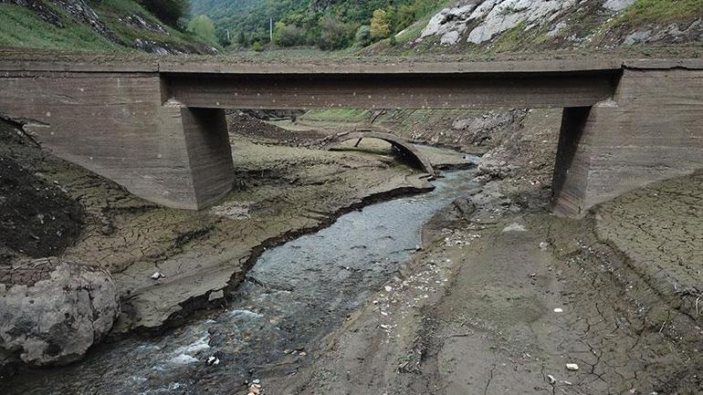 Diğer yandan baraj inşası ile su altında kalan köprülerden biri, suyun çekilmesiyle yeniden gün yüzüne çıktı.